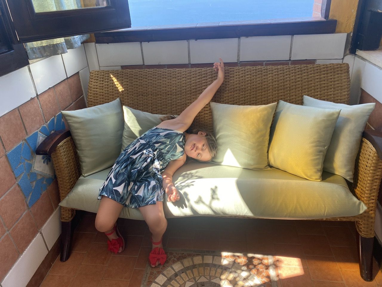 Large L-shaped terrace, partially covered, probably facing south and west (orientation to be verified)