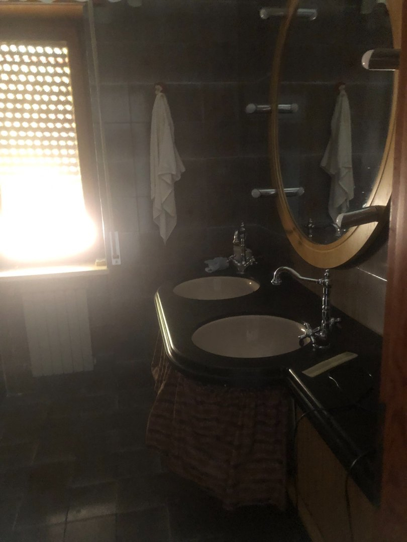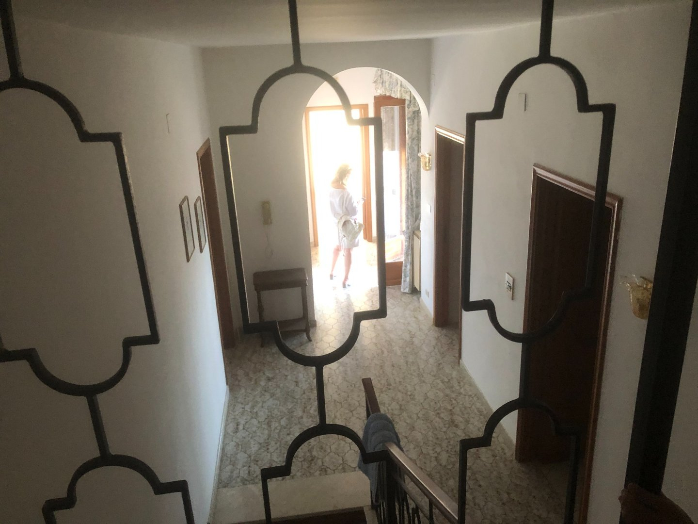 The house has two above-ground floors and an attic (currently used as storage). It includes spacious terraces and a garden with mature trees. The main living area consists of several bedrooms, bathrooms, a kitchen, and a living room. The property comes with older furnishings. Heating is provided by central radiators, and some rooms are equipped with air conditioning.